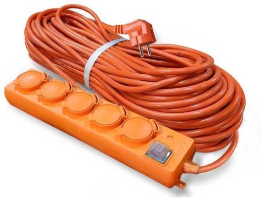 товленным из полиэфирного эластомера, предохраняющим изделие от пыли и влаги. Данный тип удлинителей выпускается как с проводом марки ПВС, так и с проводом марки КГ, позволяющимэксплуатацию удлинителей при минусовых температурах. Провод марки ПВС армирован неразборной литой вилкой, выполненной в цвет провода, а марки КГ – разборной каучуковой вилкой со степенью защиты IP44. Преимущества:1.Провод марки ПВС армирован неразборной литой вилкой, выполненной в цвет провода, а марки КГ – разборной каучуковой вилкой со степенью защиты IP44. При изготовлении вилок используется никелированный цельнолатунный штифт. 2.Провод 100 % ГОСТ. Провод на удлинителях изготовлен в соответствии с ГОСТ Р, что гарантирует его высокое качество. На провод наносится маркировка производителя, типом и сечением провода. Оранжевый цвет делает изделия более заметными в любом месте эксплуатации, а также на полке в магазине.3. Удлинитель снабжен подпружиненными крышками, которые защищают гнезда розеток и обеспечивают их мгновенное закрытие после удаления вилки прибора-потребителя из розетки без дополнительных усилий. Наличие выключателя со световой