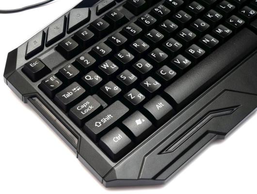 Эта стильная черная клавиатура станет надежным помощником в любых игровых баталиях. Мембранный механизм обеспечивает мгновенный отклик на каждое нажатие, а подсветка символов позволяет с комфортом играть даже в полной темноте.