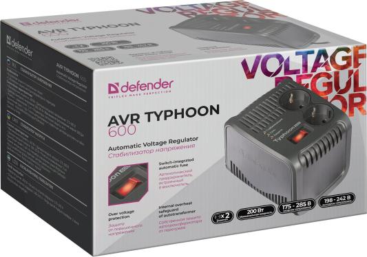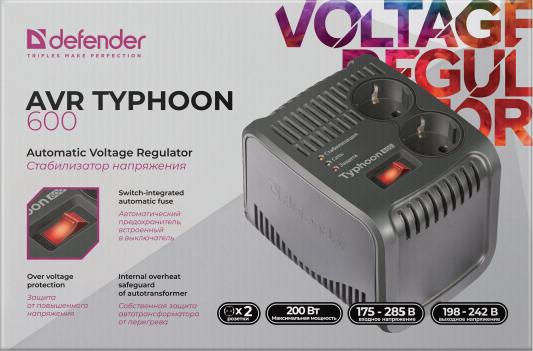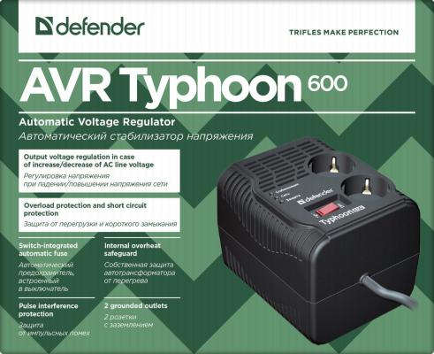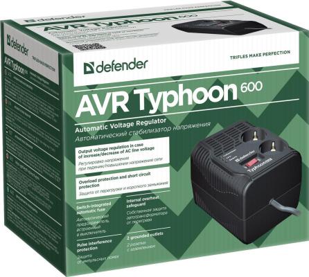 Стабилизатор напряжения Defender AVR Typhoon 600 2 розетки 0.6 м 99032