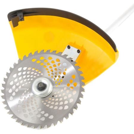 В зависимости от рельефа местности и плотности растительного покрова предусмотрена быстрая замена режущего инструмента: стальной режущий диск, предназначенный для работы с жесткой травой и молодым кустарником, меняется на режущую полуавтоматическую триммерную катушку с леской для скашивания травы.