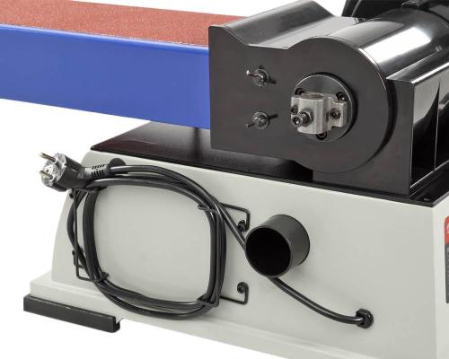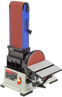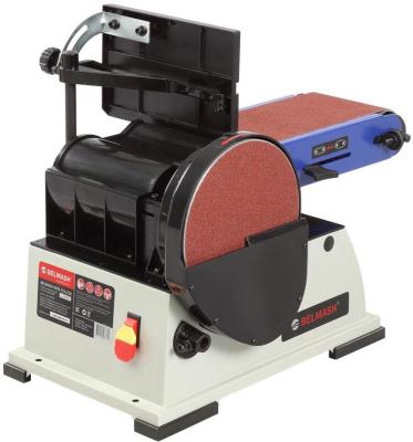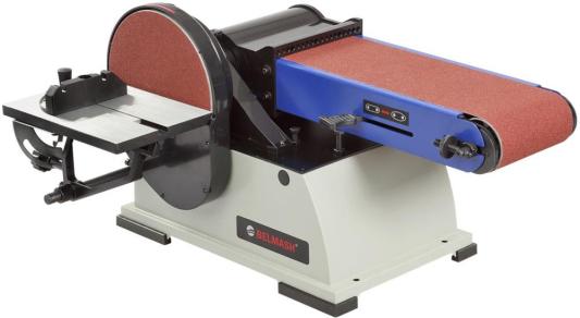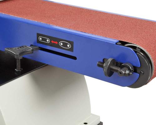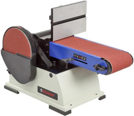 Рабочий стол – алюминиевый с пазом под установку углового упора, используется как при шлифовании лентой, так и диском. Угол наклона стола от 0 до 45 град. Ленточный шлифовальный блок поворотный.