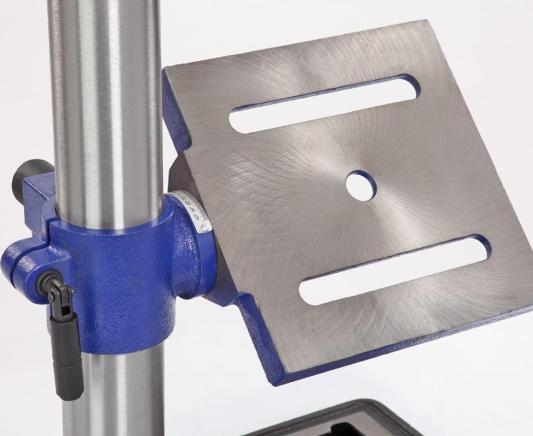 Патрон быстрозажимной с максимальным диаметром зажимаемого хвостовика инструмента 16 мм. Диаметр стойки (колонны) 60 мм, имеется зубчатая рейка, поднятие/опускание стола настраивается с помощью рукоятки.