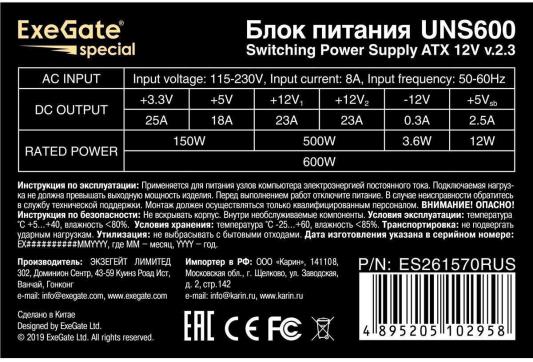 Блок питания способен выдавать стабильный ток по всем линиям, включая до 22 А по линии +12 В, что важно для питания современных процессоров и видеокарт. Производитель ExeGate гарантирует качество и надежность устройства, предоставляя 12-месячную гарантию.