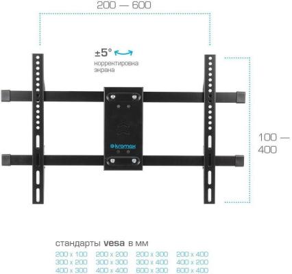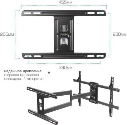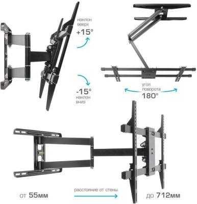 ДополнительноЛегкий монтаж при помощи съемной монтажной пластины. Мощная стальная конструкция. Универсальный телевизор на кронштейне можно наклонить, повернуть и сдвинуть к стене. Максимальный вылет от стены 712 мм. Корректировка экрана уникальная возможность вращения экрана на ±5° относительно стены.