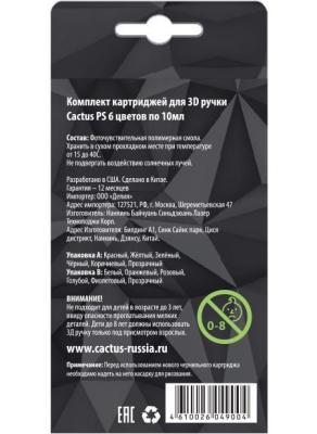 Пластик для ручки 3D Cactus CS-3D-UVPS-B УФ-полимер 6цв.