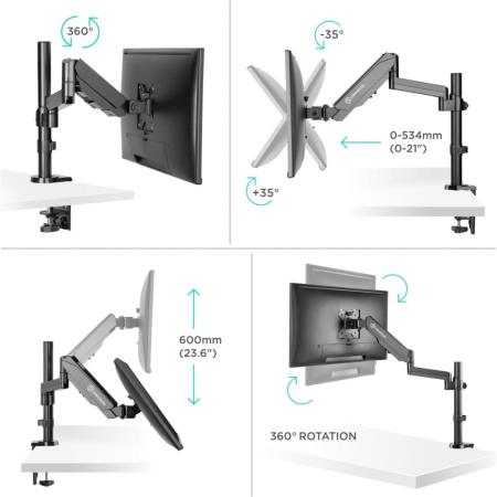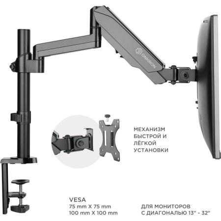 Кронштейн для монитора ONKRON/ 13-32" макс. 100*100, струбцина, наклон -35?+35? поворот 360?, вылет от основание 0-534мм, макс.перемещение по вертикали 0-600мм, кабель-канал, пружина, нагрузка 1-8кг
