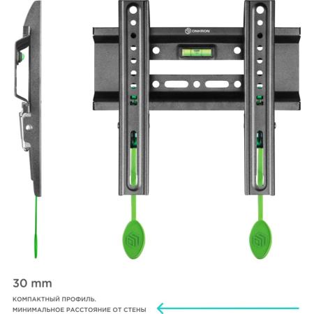 ДополнительноНастенный кронштейн ONKRON FM1 предназначен для телевизоров с диагональю от 17 до 43 дюймов (43,18-109,2 см). Максимальный выдерживаемый вес составляет 30 кг.