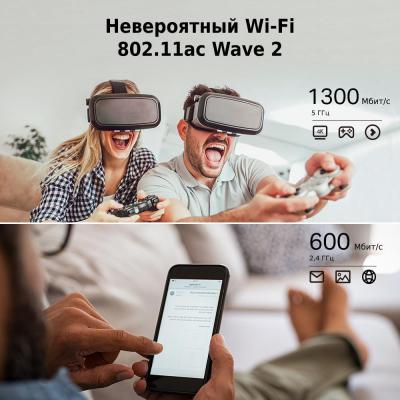 Дополнительная информация802.11ac Wave 2 Wi-Fi — до 1300 Мбит/с на диапазоне 5 ГГц и до 600 Мбит/с на 2,4 ГГц.