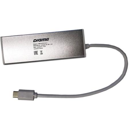 Разветвитель USB Type-C Digma HUB-4U3.0-UC-S 4 х USB 3.0 серебристый