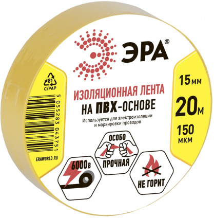 ЭРА C0036547 ПВХ-изолента 15ммх20м желтая [043751]