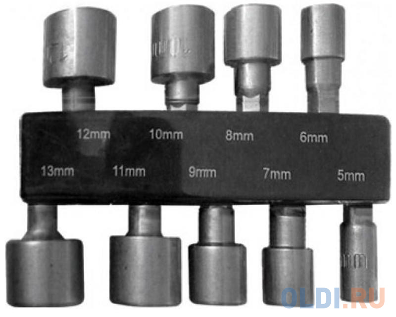 В наборе: 9 головок (5; 6; 7; 8; 9; 10; 11; 12; 13 мм). Для применения с электроинструментом. Материал: закаленная хром-ванадиевая сталь. Упаковка: блистер.
