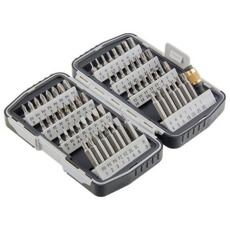 биты по 50 мм – 15 шт. РН № 1, 2, 3; PZ № 1, 2; SL 4, 5; H 3, 4, 5, 6; Т 15, 20, 25, 30.