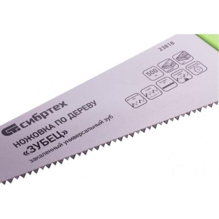 Ножовка по дереву "Зубец", 500 мм, шаг зуба 6.5мм, зуб 2D, калёный зуб, 2-х комп. рукоятка// Сибртех