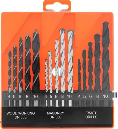 Набор сверл по бетону, металлу, дереву 4-5-6-8-10 мм, 15 шт. пласт. бокс, цилин.хвостовик// Sparta