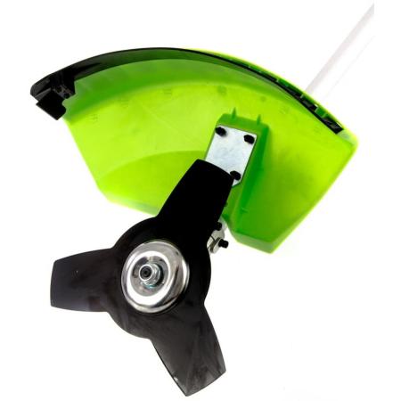 В зависимости от рельефа местности и плотности растительного покрова предусмотрена быстрая замена режущего инструмента: стальной режущий диск, предназначенный для работы с жесткой травой и молодым кустарником, меняется на режущую полуавтоматическую триммерную катушку с леской для скашивания травы.