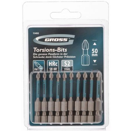 Набор бит торсионных PH1x50 мм, для ударных шуруповертов, 10 шт.// Gross
