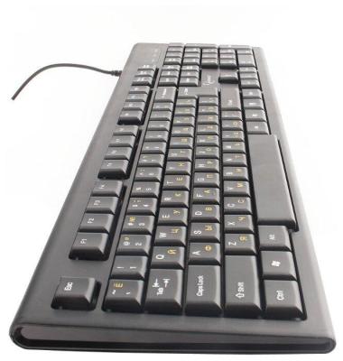 Клавиатура выполнена в черном цвете, который гармонично впишется в любой интерьер. Желтые и белые буквы на клавишах обеспечивают хорошую читаемость даже при слабом освещении. Длинный кабель 1,45 м позволяет удобно расположить клавиатуру на рабочем столе.