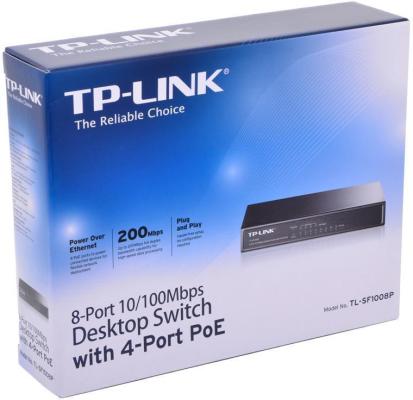 Коммутатор TP-LINK TL-SF1008P 8-портовый 10/100 Мбит/с настольный коммутатор с 4 портами PoE