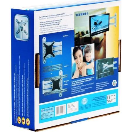 Кронштейн Kromax TECHNO-1 Grey, диагональ 15"-26", 4 степени свободы, угол наклона ±15, поворот 180, VESA 75/100 15кг