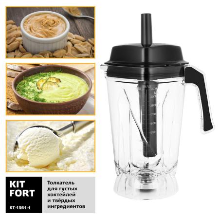 Прочие свойства и особенностиБлендер Kitfort КТ-1361 с электронным сенсорным управлением предназначен для приготовления пюре, взбивания, измельчения и смешивания. Прибор идеально подходит для смешивания фруктовых и фитнес-напитков, молочных коктейлей, супов-пюре, соусов и детского питания. В модели есть специальные программы, предназначенные для помола зерен, приготовления смузи и коктейлей, мороженого, а также импульсный режим.