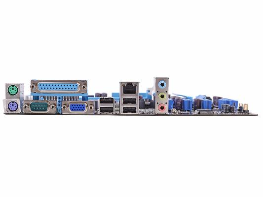 Порты на задней панели1x PS/2 клавиатура, 1x PS/2 мышь, 4x USB 2.0, 1x LPT, 1x COM, 1x RJ-45 LAN, 1x VGA монитор, Line-out, Line-in, Mic-in