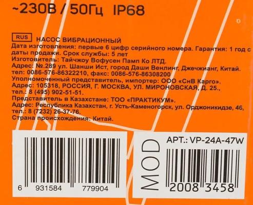 Насос вибрационный Patriot VP-24A 300Вт 1080л/час (315302510)