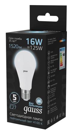 Лампа светодиодная E27 16W 4100K матовая 102502216