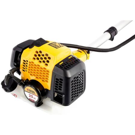 В зависимости от рельефа местности и плотности растительного покрова предусмотрена быстрая замена режущего инструмента: стальной режущий диск, предназначенный для работы с жесткой травой и молодым кустарником, меняется на режущую полуавтоматическую триммерную катушку с леской для скашивания травы.