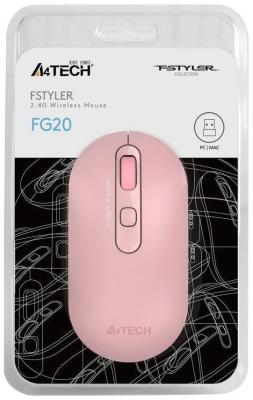A4Tech FStyler FG20 является беспроводным манипулятором, поддерживающим связь с компьютерным устройством посредством ресивера USB, который обеспечивает стабильное соединение на расстоянии 10-15 метров. Манипулятор представлен в розовом корпусе, эргономика которого позволяет взять его в любую руку и не ощущать дискомфорта в процессе эксплуатации. Мышь сделана из пластика, а верхняя панель модели обладает матовым покрытием, которое не допускает скольжения руки, обеспечивая надежный хват.