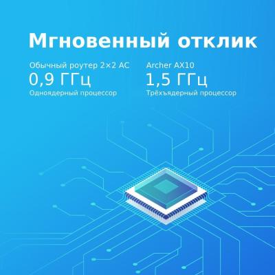 С поддержкой инновационных технологий Wi-Fi 6 роутер Archer AX10 готов обеспечить высокую скорость и стабильное соединение для множества современных устройств одновременно.