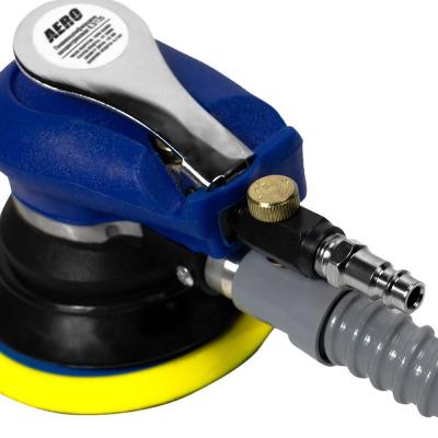 Шлифмашина позволяет быстро очищать, как выпуклые, так и плоские поверхности, исключая появление царапин и обеспечивая равномерность обработки. Инструмент оснащён регулятором подачи сжатого воздуха, что позволяет изменять скорость вращения рабочего инструмента в зависимости от шлифовального круга и обрабатываемой поверхности. Рабочим инструментом шлифмашины является пластиковый диск с липучкой, на который крепится шлифовальный круг.