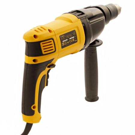Прочие особенности и свойстваДрель ударная Denzel ID-1050-2 двухскоростная - самая мощная модель в линейке,отлично подходит для сверления древесины,металла,бетона,кирпича. Возможность работы на низких оборотах позволяет использовать инструмент в качестве строительного миксера. Максимальный диаметр сверления отверстий в дереве до 25 мм,металле до 13 мм и бетоне до 13 мм. Благодаря двум скоростям вращения патрона 0-3000/0-1100 об/мин и выбору частоты 0-48000/0-17600 уд/мин легко подобрать оптимальный режим. Долгий срок службы и стабильность работы достигается благодаря усовершенствованной конструкции щеточного узла и медной обмотке двигателя. Металлический корпус обеспечивает прочность конструкции и эффективность отвода тепла. Небольшой вес 3,25 кг и длинная обрезиненная рукоятка позволяют легко удерживать дрель во время работы. Преимущества: Широкий диапазон хвостовиков оснастки 1,5 - 13 мм позволяет работать со сверлами маленького и большого диаметра. Для использования левосторонних сверл предусмотрен реверс,меняющий направление вращения патрона. Фиксация клавиши регулятора и кнопки включения обеспечивает комфортную работу,исключая возможность непроизвольного переключения режимов. Легко работать с материалами разной плотности благодаря возможности отключения ударной функции. Благодаря ограничителю глубины сверления получаются одинаковые отверстия без дополнительных замеров. Эффективную работу ударного механизма с бетоном и кирпичом обеспечивает массивный промщит. Трехкулачковый самоцентрирующийся патрон закручивается с помощью ключа,что обеспечивает надежную фиксацию оснастки и комфортную работу в ударном режиме. Класс защиты II - двойная изоляция токопроводящих элементов обеспечивает безопасность пользователя. Увеличение рабочей зоны и мобильность обеспечивает кабель питания 3 м. Ключ удобно хранить - дрель оснащена специальным держателем под корпусом. Для удобства транспортировки предусмотрен чемодан в комплекте.