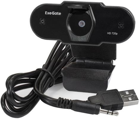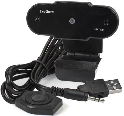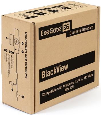 Exegate EX287385RUS Веб-камера ExeGate BlackView C525 HD (матрица 1/3"1,3 Мп,1280х720,720P,30fps,4-линзовый объектив,USB+35mm Jack,фиксированный фокус, микрофон с шумоподавлением, универсальное к