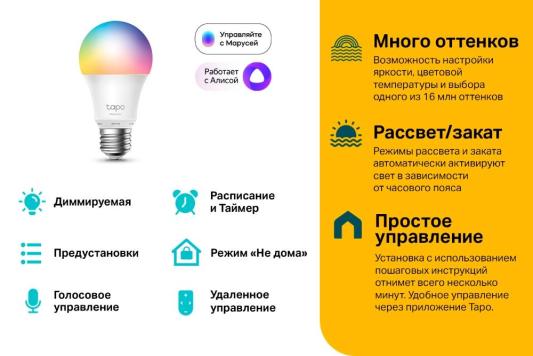 Прочие особенности и свойстваУмная многоцветная Wi?Fi лампа