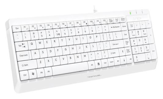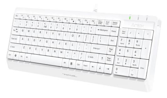 Подключение по USB и длина кабеля 1,5 метра дают возможность удобно расположить клавиатуру. Питание от USB-порта избавляет от необходимости использовать батарейки. Четкие черные буквы на белых клавишах обеспечивают хорошую читаемость даже при слабом освещении.