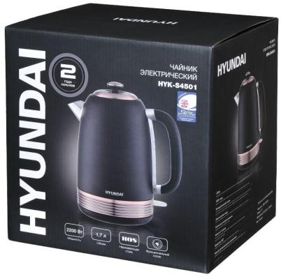Электрический чайник Hyundai HYK-S4501 чёрного цвета с бронзовым напылением будет идеальным дополнением к вашей кухне. Он предназначен для приготовления чая и кофе, а его механическое управление обеспечивает простоту использования. Этот компактный изделие легко вставить в любую кухонную мебель, не занимая много места.