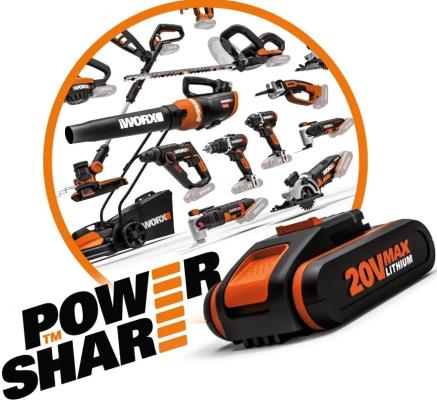 Прочие особенности и свойстваУгловая шлифмашина (болгарка) WORX WX800 20V работает от универсальных литий-ионных аккумуляторных батарей WORX PowerShare ёмкостью 2 Ач, 4 Ач и 6 Ач. Эти батареи совместимы со всей аккумуляторной техникой WORX PowerShare: с линейками 20V, 40V и 80V.