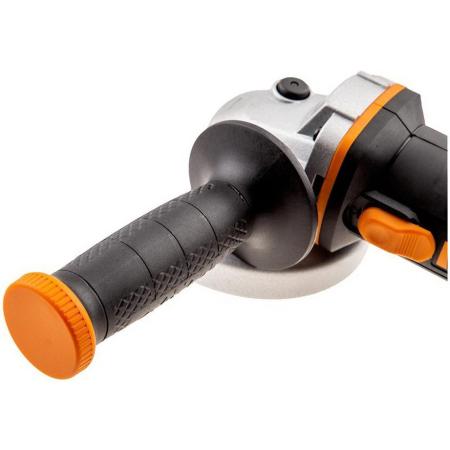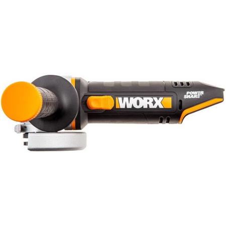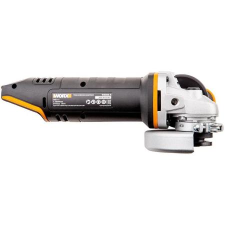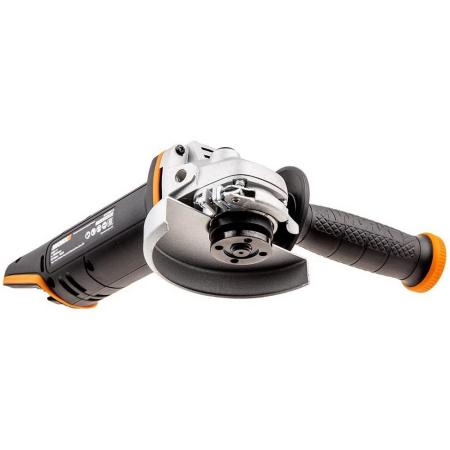 Прочие особенности и свойстваWORX WX800.9 – Аккумуляторная угловая шлифовальная машина (болгарка) - предназначена для шлифования и подрезания металла. Мощный двигатель работает от аккумулятора 20В, что определяет высокую производительность и скорость реза. Тонкая конструкция корпуса обеспечивает более комфортную работу оператора и способствует точному контролю над машинкой и предотвращению выскальзывания инструмента из рук. В комплекте с устройством идет дополнительная боковая рукоять. Для быстрой замены оснастки УШМ оснащена блокировкой шпинделя. Важным преимуществом данной модели является малый вес - 1,54 кг. Для защиты двигателя от перегрева данная модель оснащена специальной вентиляцией и имеет систему охлаждение двигателя. Ударопрочный корпус устройства защищает его от повреждений, а металлический корпус редуктора еще больше увеличивает надежность инструмента. Технические характеристики WORX WX800.9: Тип двигателя: Щеточный. Напряжение аккумулятора: 20 В. Тип аккумулятора: Li-lon. Количество аккумуляторов в комплекте: Без АКБ и ЗУ. Кол-во оборотов без нагрузки: 8600 об/мин. Размер диска: 115 мм Резьба: М14 Вес без АКБ: 1,54 кг