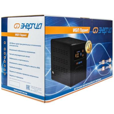 Инверторы «Энергия» серии ИБП Гарант заряжают аккумулятор в момент присутствия сети. При полном пропадании питания прибор находится в режиме преобразователя постоянного сигнала в переменный (инверторный режим). Он преобразует постоянное напряжение аккумуляторной батареи в переменное напряжение 220 Вольт, которое подается к потребителям.