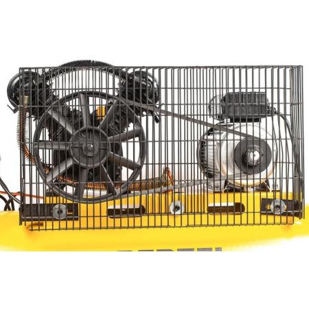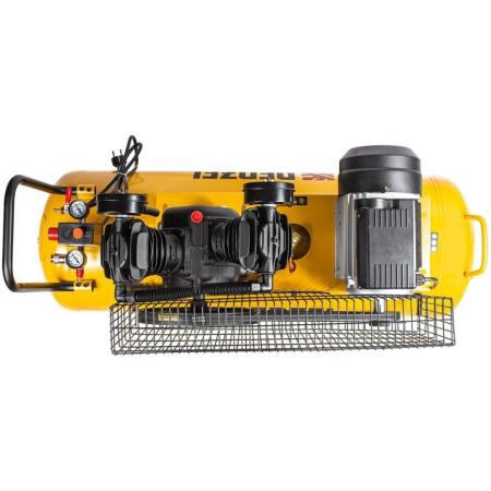 Высокий ресурс чугунных цилиндров, надежная ременная передача и объемный ресивер на 100 л позволяют использовать компрессор длительное время. При необходимости можно напрямую подключать второй накопитель или пневмомагистраль через дополнительный порт.
