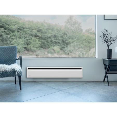 Благодаря использованию прецизионного термостата конвектор в режиме ожидания расходует не более 0,5 Вт. Обогреватель соответствует классу защиты IP 24. Может управляться как вручную при помощи термостата, так и удаленно, при условии подключения к системе Orion 700 или Nobo Energy Control. Конвектор может работать автономно или в единой цепи с другими обогревателями.
