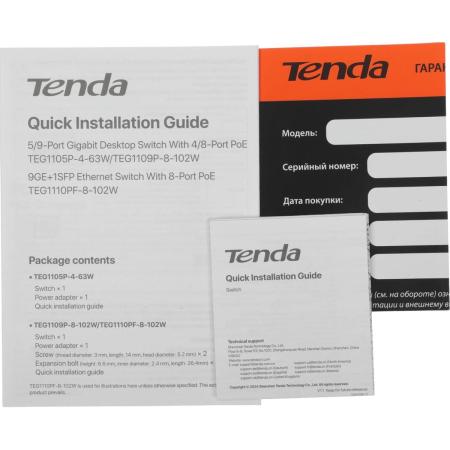Коммутатор 5PORT 1000M 4POE TEG1105P-4-63W TENDA