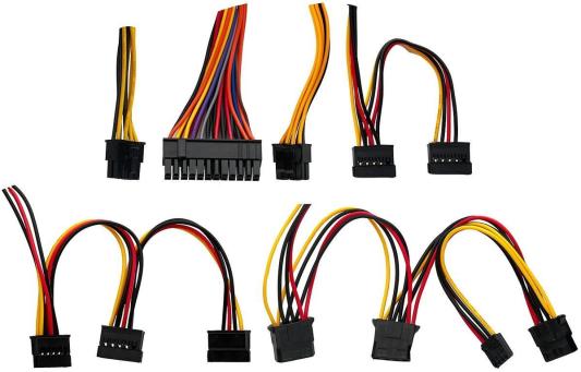 Активный PFC и высокий КПД 84% гарантируют эффективную работу и низкое энергопотребление. Блок оснащен всеми необходимыми разъемами, включая 20+4 pin для материнской платы, два 4+4 pin для процессора, пять SATA и один PCI-E для видеокарты. Длинные кабели позволяют удобно проложить проводку в корпусе.