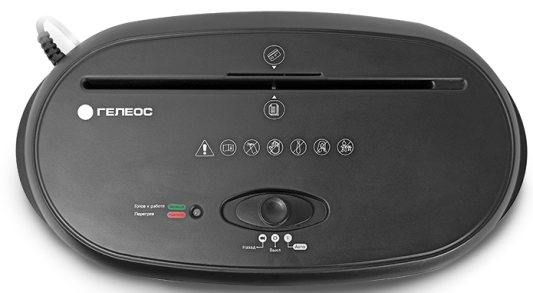 Уничтожитель документов ГЕЛЕОС УМ24-4, DIN P-4 (4 ур-нь секр.), фрагмент 3,9х38мм, 17 лист (70г/м2), CD/пл.карты/скрепки/скобы, 24 литра