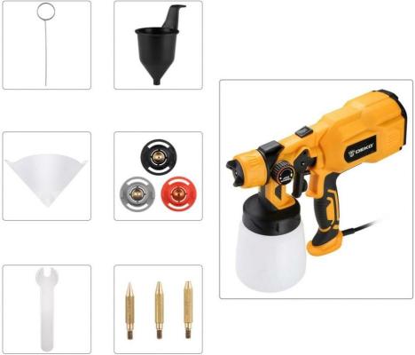 ОписаниеЭлектрический краскопульт DEKO DKSG55K1 HVLP 018-1043 используется для обработки поверхности водно-меловыми и водно-известковыми составами.