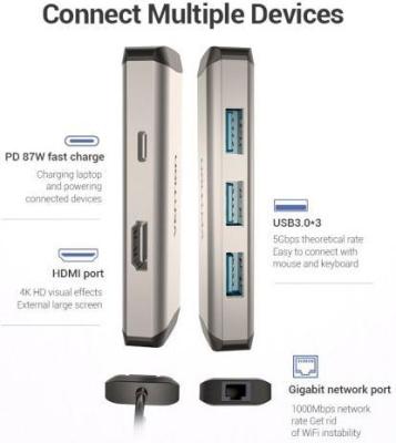 ОписаниеПрименение: Мультифункциональный хаб, позволяет увеличить количество разъемов на вашем устройстве с разъемом USB Type C. Поддерживает стандарт IEEE 802.3x Flow Control (Управление потоком). Хаб позволяет добавить внешний сетевой разъем RJ45 на оборудовании с разъемом USB, для Ethernet-сетей со стандартами 10BASE-T (10 Мбит/сек), 100BASE-T(x) (100 Мбит/сек), 1000BASE-T(x) (1 Гбит/сек). Также благодаря 3 разъемам USB 3.0, одновременно можно подключать, или заряжать до 2 устройств. Разъем HDMI передаст аудио и видео сигнал на проектор или монитор. Разъем USB Type C можно использовать для зарядки устройств. Поддерживает технологию Plug and Play, тем самым, не требуя установки дополнительного программного обеспечения и драйверов.