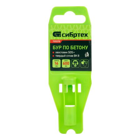 Бур по бетону, 16 x 600 мм, SDS PLUS// Сибртех