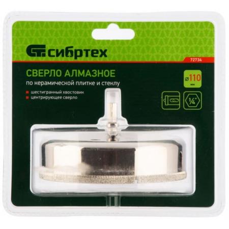 Сверло по керамической плитке и стеклу, 110 х 55 мм, 6 гр.хв-к, с центр. сверлом// Сибртех
