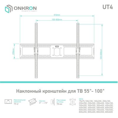 Кронштейн для телевизора Onkron UT4 черный 55"-100" макс.75кг настенный наклон