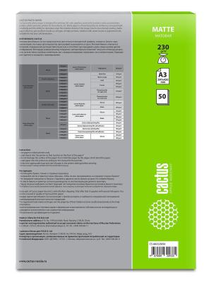 Фотобумага Cactus CS-MA323050 A3/230г/м2/50л./белый матовое для струйной печати